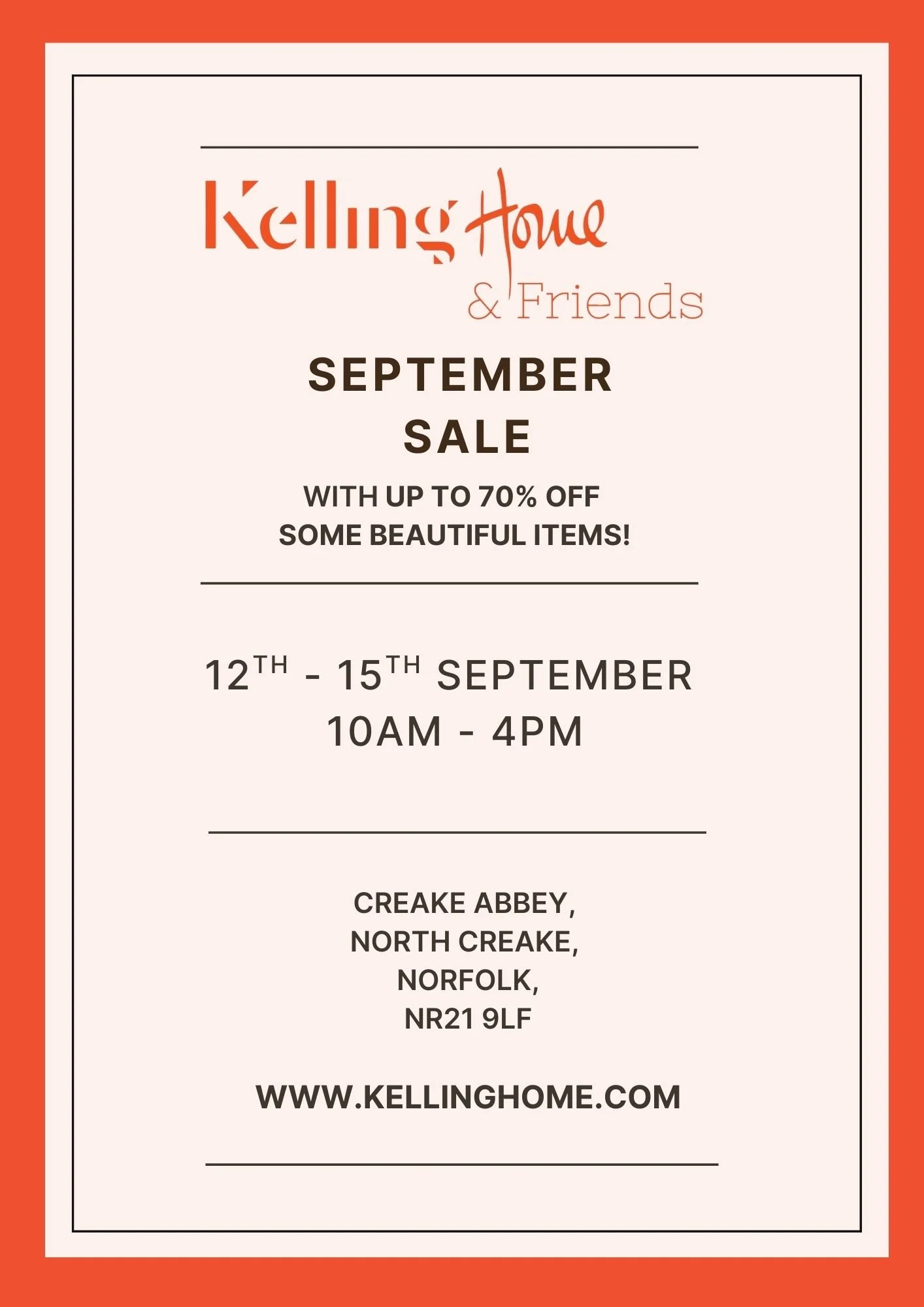 There is no better time than sale time to find some fabulous bargains to bring colour and fun to your home. Kelling Home will host their sale in the grainstore, opposite their permanent shop. Some of the Friends of Kelling Home will also have sales - look out for bargains from Abahna, Troy London, Ele and Me, Caro London and the Norfolk Olive Tree Company.